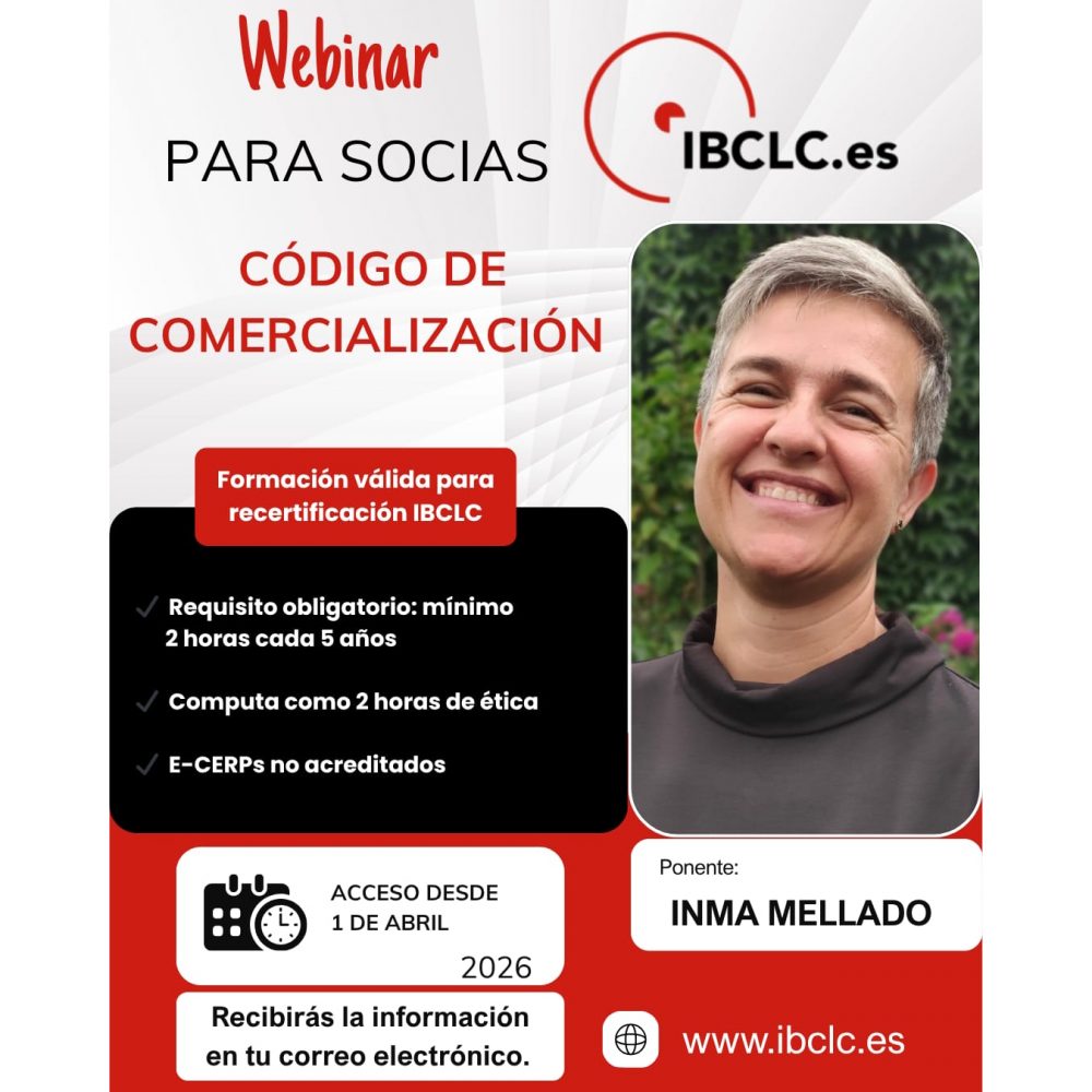 SÓLO PARA SOCIAS. El acceso estará abierto desde el 1 de abril de 2026Este webinar cubre el requisito obligatorio cada cinco años de contar con un mínimo de dos horas de formación en el Código. #IBCLC #OMS #CódigoOMS...